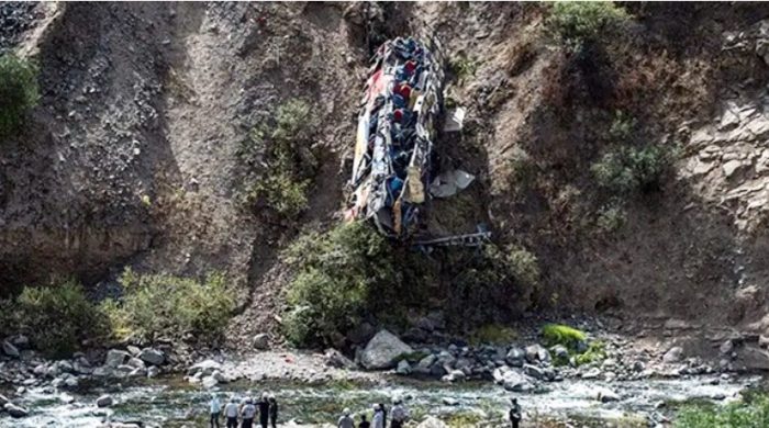 আন্তর্জাতিক ডেস্ক : পেরুর রাজধানী লিমার কাছে একটি যাত্রীবাহী বাস গভীর খাদে পড়ে দুই শিশুসহ অন্তত ৩২ জন প্রাণ হারিয়েছেন। আহত হয়েছেন আরও কয়েক ডজন মানুষ। এটি দক্ষিণ আমেরিকার দেশটিতে