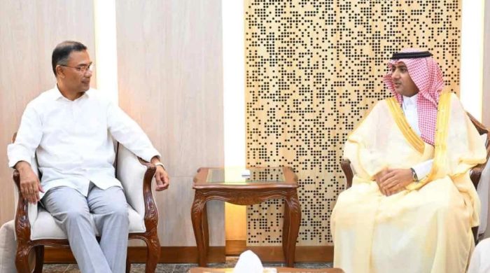 ঢাকা: প্রধানমন্ত্রী তারেক রহমান-এর সঙ্গে সৌজন্য সাক্ষাৎ করেছেন ঢাকায় নিযুক্ত সৌদি আরবের রাষ্ট্রদূত ড. আব্দুল্লাহ জাফর এইচ বিন আবিয়া। রোববার (২২ ফেব্রুয়ারি) বেলা ১১টায় সচিবালয়ে মন্ত্রীপরিষদ বিভাগে এই সাক্ষাৎ অনুষ্ঠিত