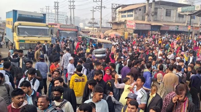 বাংলার কাগজ ডেস্ক : সাভারের আশুলিয়ায় অতিরিক্ত বাস ভাড়া আদায়ের অভিযোগে পোশাক শ্রমিক ও ঘরমুখো যাত্রীরা নবীনগর–চন্দ্রা মহাসড়ক অবরোধ করেছেন। এতে ওই সড়কে যান চলাচল ব্যাহত হচ্ছে। মঙ্গলবার (১০ ফেব্রুয়ারি)