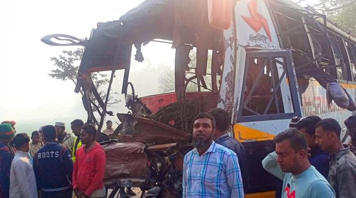 বাংলার কাগজ ডেস্ক : পাবনা-ঢাকা মহাসড়কের শোলাবাড়িয়া এলাকায় দুইটি যাত্রীবাহী বাসের মুখোমুখি সংঘর্ষে দুইজন নিহত হয়েছেন। এ ঘটনায় আহত হয়েছেন অন্তত আরও ১০ জন। মঙ্গলবার (১০ ফেব্রুয়ারি) সকাল সাড়ে সাতটার