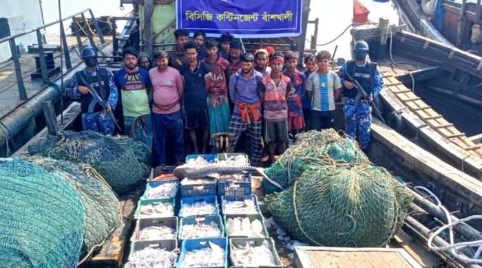 চট্টগ্রাম : চট্টগ্রামের বাঁশখালীতে কোস্টগার্ডের অভিযানে অবৈধ আর্টিসানাল ট্রলিং বোট, জাল ও বিপুল পরিমাণ সামুদ্রিক মাছসহ ১৬ জেলেকে আটক করা হয়। বুধবার (২৪ ডিসেম্বর) সকালে কোস্টগার্ড মিডিয়া কর্মকর্তা লেফটেন্যান্ট কমান্ডার