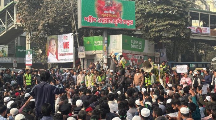 ঢাকা : ইনকিলাব মঞ্চের মুখপাত্র শরিফ ওসমান হাদি হত্যার বিচার দাবিতে রাজধানীর শাহবাগ মোড় অবরোধ করেছে ইনকিলাব মঞ্চ। শুক্রবার (২৬ ডিসেম্বর) জুমার নামাজের পর ইনকিলাব মঞ্চের সদস্যরা শাহবাগে অবস্থান নেন।