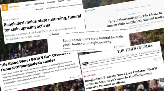 বাংলার কাগজ ডেস্ক : ইনকিলাব মঞ্চের মুখপাত্র শহিদ ওসমান হাদির জানাজায় অংশ নিয়েছেন লাখো মানুষ। গত ১২ ডিসেম্বর পুরানা পল্টনের বক্স কালভার্ট রোডে দুর্বৃত্তের গুলিতে আহত হন তিনি। দেশে ঢাকা