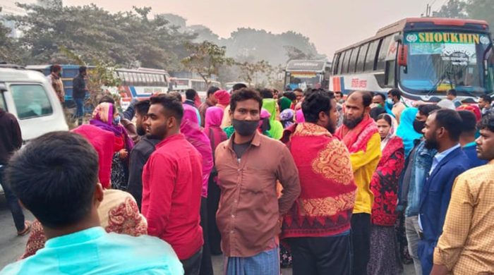 ময়মনসিংহ : যাত্রীবাহী বাসে এক শ্রমিককে ‘তুলে নেওয়ার’ অভিযোগে ঢাকা-ময়মনসিংহ মহাসড়ক অবরোধ করেছেন পিএ নিট কম্পোজিট লিমিটেড কারখার শ্রমিকরা। এ সময় মহাসড়কে যানচলাচল বন্ধ হয়ে যায়। পরে ওই শ্রমিককে থানায়