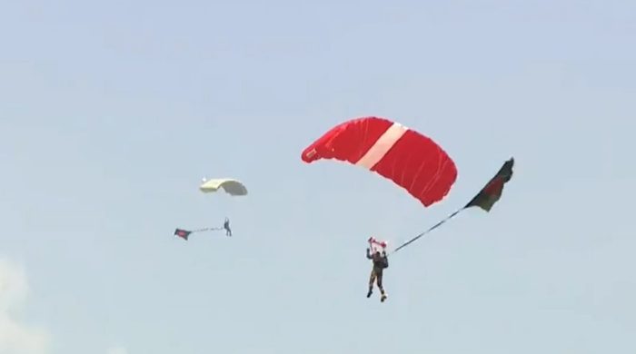 বাংলার কাগজ ডেস্ক : মহান বিজয় দিবস উপলক্ষে সর্বাধিক পতাকা হাতে প্যারাস্যুটিং করে বাংলাদেশ বিশ্ব রেকর্ড গড়েছে। মঙ্গলবার (১৬ ডিসেম্বর) রাজধানীর তেজগাঁও পুরোনো বিমানবন্দর সংলগ্ন প্যারেড গ্রাউন্ডে সশস্ত্র বাহিনীর উদ্যোগে