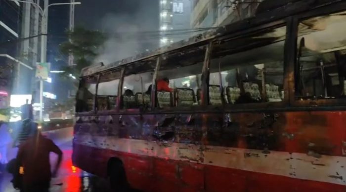 ঢাকা : ঢাকার মহাখালী এলাকায় একটি বাসে আগুন দিয়েছে দুর্বৃত্তরা। শনিবার (২২ নভেম্বর) রাত ৯টার দিকে বটতলা এলাকায় দুর্যোগ ও ত্রাণ অধিদপ্তরের সামনের সড়কে বাসটিতে আগুন ধরে যায়। তাৎক্ষণিকভাবে আগুন