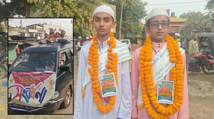 রংপুর : রংপুর বিভাগের সৈয়দপুরে অনুষ্ঠিত ‘আন্তর্জাতিক কুরআন প্রতিযোগিতায়’ বিজয়ী দুই শিক্ষার্থীকে নিয়ে উচ্ছ্বাস করেছেন গ্রামবাসী। তাদের নিয়ে ঠাকুরগাঁও থেকে বালিয়াডাঙ্গী পর্যন্ত প্রায় ২২ কিলোমিটার সংবর্ধনা র্যালির আয়োজন করা হয়েছে।