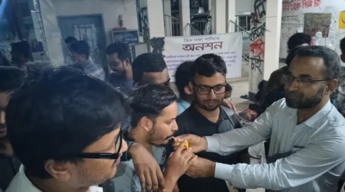 বাংলার কাগজ ডেস্ক : জগন্নাথ বিশ্ববিদ্যালয়ের (জবি) জগন্নাথ বিশ্ববিদ্যালয় কেন্দ্রীয় ছাত্রসংসদের (জকসু) নির্বাচনের রোডম্যাপ ঘোষণা, সম্পূরক বৃত্তিসহ তিন দফা দাবি মেনে নিয়েছে প্রশাসন। অনশনরত শিক্ষার্থীরা প্রশাসনের আশ্বাসে অনশন কর্মসূচি প্রত্যাহার
