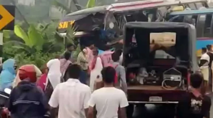 ময়মনসিংহ :ময়মনসিংহের ভালুকায় দুই বাসের মুখোমুখি সংঘর্ষে দুইজন নিহত হয়েছেন। এ দুর্ঘটনায় অন্তত আরও ১০ জন আহতের খবর পাওয়া গেছে। শনিবার (১৩ সেপ্টেম্বর) সকাল ৮টার দিকে উপজেলার ভরাডোবা তাসরিফ কটন