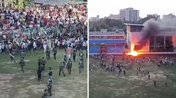 কক্সবাজার : কক্সবাজারে ডিসি গোল্ডকাপ ফুটবল টুর্নামেন্ট-এর ফাইনাল ম্যাচকে কেন্দ্র করে আইনশৃঙ্খলা বাহিনী ও দর্শকদের মধ্যে তুমুল সংঘর্ষের ঘটনা ঘটেছে। এতে কক্সবাজার সদরের উপজেলা নির্বাহী অফিসার (ইউএনও) নিলুফা ইয়াসমিন, একাধিক