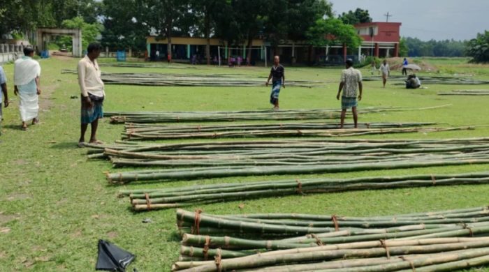 টাঙ্গাইল : টাঙ্গাইলের সখীপুর উপজেলার হাতিবান্ধা ইউনিয়নের কামালিয়া চালা সরকারি প্রাথমিক বিদ্যালয়ের মাঠে প্রায় দুই দশক ধরে বসছে বাঁশের হাট। নিয়ম অনুযায়ী সপ্তাহে সোমবারেই হাট বসার কথা থাকলেও রোববার সকাল