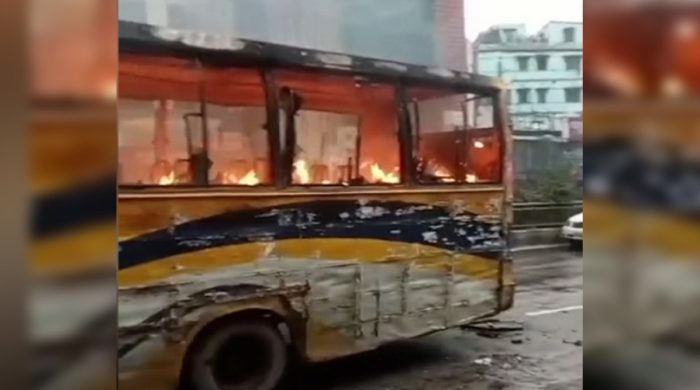 ঢাকা : রাজধানীর মিরপুরের সেনপাড়া এলাকায় আলিফ পরিবহনের একটি যাত্রীবাহী বাসে আগুন দেয়ার ঘটনা ঘটেছে। শুক্রবার (৩ অক্টোবর) সকাল ৭টার দিকে এই আগুন দেয়ার ঘটনা ঘটে। পুলিশ ঘটনাস্থলে পৌঁছে বাসটি জব্দ করেছে।